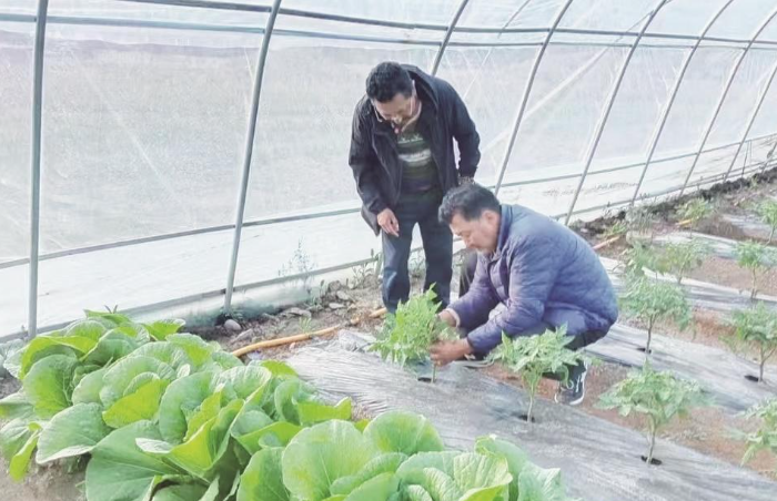 雪山腳下,蔬菜大棚內(nèi)綠意盎然