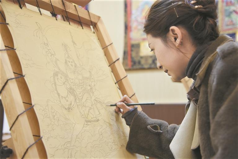 非遺代表性傳承人繪制唐卡。蘇烽 攝