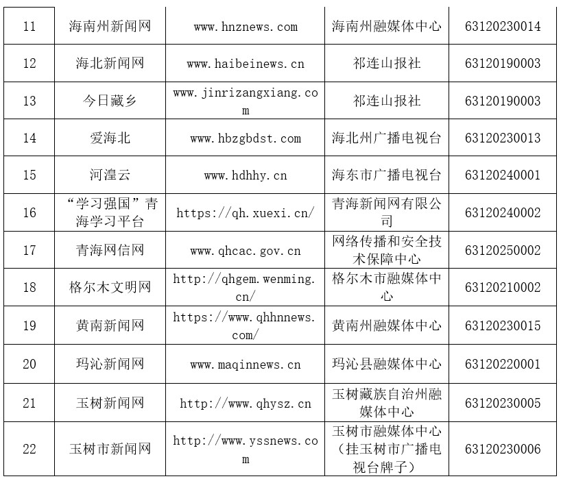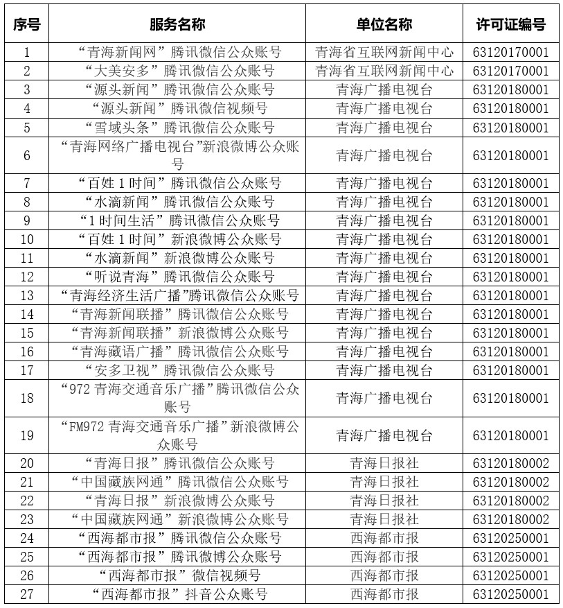 青海省互聯(lián)網(wǎng)新聞信息服務(wù)單位許可信息