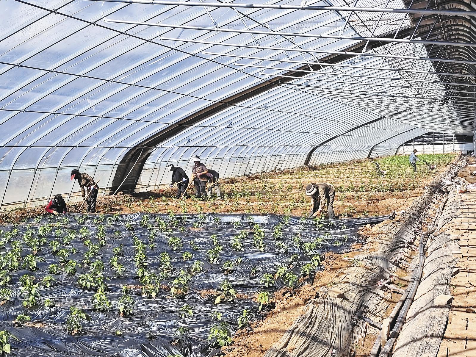“這里的土壤是鹽堿地,板結(jié)嚴(yán)重。”白虎升說,剛開始時,為了改良土壤,他們清除石頭、施有機肥,也因此投入了大量的人力財力。短短一個月后,原本貧瘠的土地已經(jīng)長出了綠油油的蔬菜。截至目前,他在43個大棚里種植了草莓、辣椒、菜花、黃瓜等15個品種的蔬果,每天能產(chǎn)出2000斤左右的新鮮蔬果。