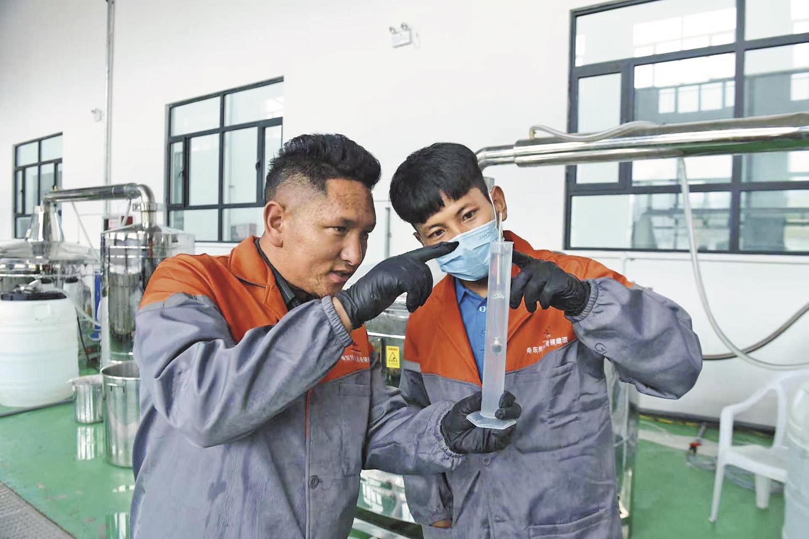 工人觀察剛出爐的青稞酒。殷之皓 攝