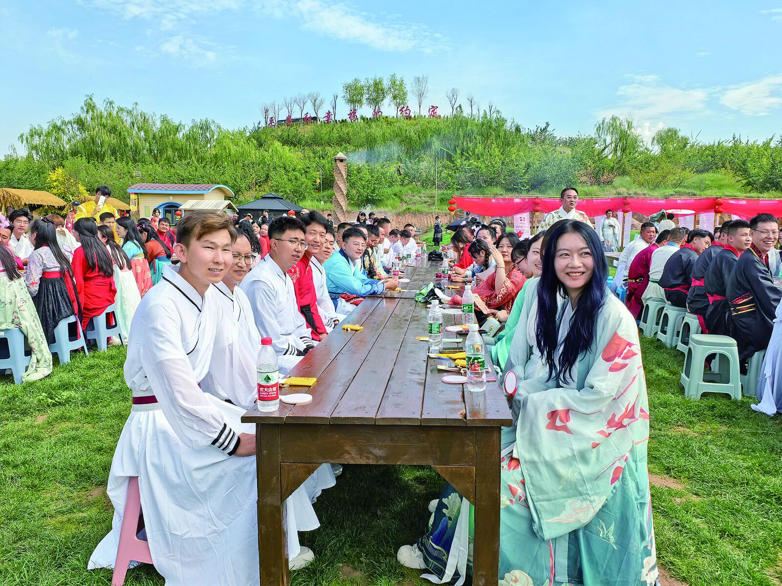 本次活動以“會聚良緣 相約七夕”為主題,通過聯(lián)誼交流為當?shù)貑紊砬嗄曷毠烤搭橋,提供認識交流、發(fā)展友誼、收獲愛情的平臺,F(xiàn)場仿古風的布置,身著唐裝漢服的青年,飛花令、蹴鞠、投壺、射箭等傳統(tǒng)民俗互動游戲,讓大家熱情參與其中,在浪漫輕松的氛圍中尋找良緣。
