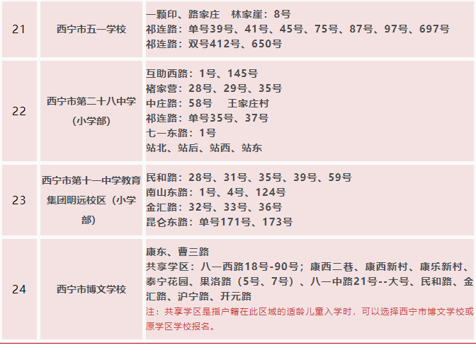 西寧城區(qū)小學(xué)一年級(jí)學(xué)區(qū)范圍公布