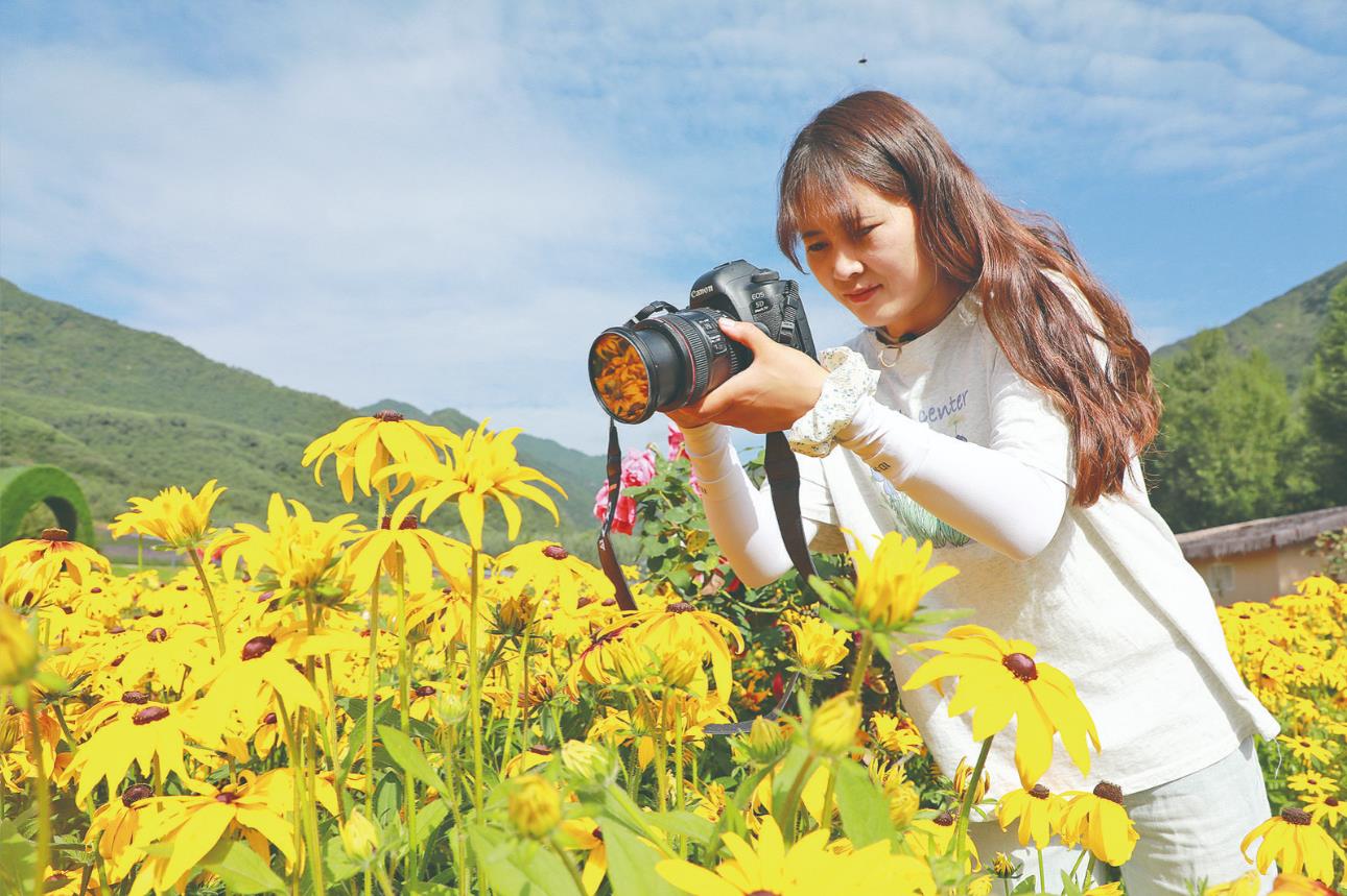 “天氣炎熱,又剛好是周末,就帶著小孫女來這里看看花、納納涼。”王女士說,遠(yuǎn)眺是青翠的大山,近看是絢爛的花海,有一種賞心悅目的感覺。“景區(qū)種植黑心菊、孔雀草、月季、醉蝶、百日草等花卉,面積500多畝。今年,還新增了大麗花、小麗花共80畝。”花海景區(qū)工作人員楊婉介紹,目前,麗花、黑心菊、孔雀草、月季、馬鞭草等紛紛盛開,引得游人在花海里漫步、拍照、避暑納涼、賞花打卡,好不熱鬧。