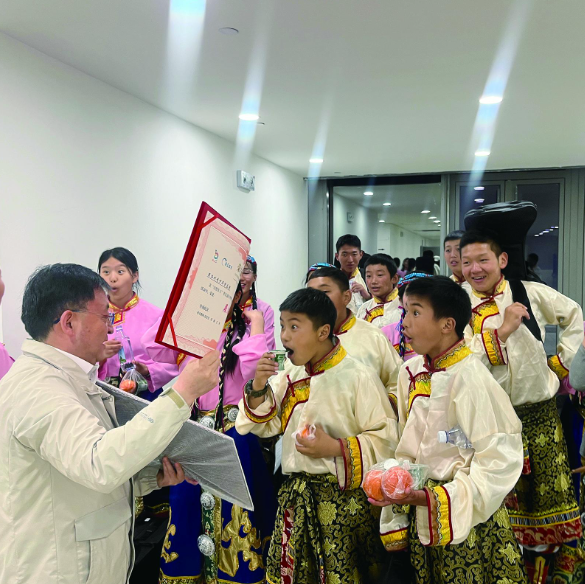趙佳宜的建議,對(duì)于來(lái)自上海、在學(xué)校工作已有兩年的校長(zhǎng)常途來(lái)說(shuō),有著更深遠(yuǎn)的意義。在這個(gè)農(nóng)村出身、從事教育工作三十年的老校長(zhǎng)看來(lái),良好的學(xué)習(xí)環(huán)境并不局限于課堂,要多給這些來(lái)自牧區(qū)的學(xué)生創(chuàng)造一些走出校園的機(jī)會(huì)。眼界打開(kāi)了,才會(huì)目標(biāo)明確、志向遠(yuǎn)大;親身感受了,才會(huì)心懷感恩、努力學(xué)習(xí)。就像這次比賽,不僅給了孩子們一次展現(xiàn)音樂(lè)才華的機(jī)會(huì),更搭建了一個(gè)促進(jìn)各民族交往交流交融、鑄牢中華民族共同體意識(shí)的平臺(tái)。