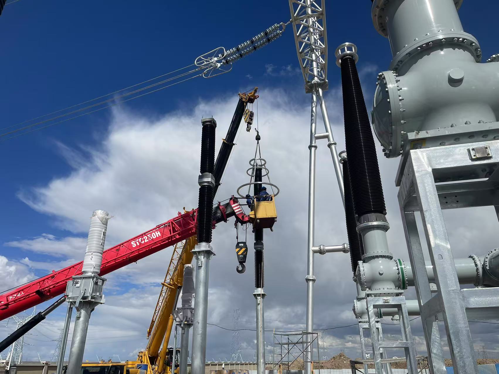 香加750千伏變電站擴(kuò)建工程施工現(xiàn)場進(jìn)行戶外330千伏避雷器安裝作業(yè)。攝影:巴得佺
