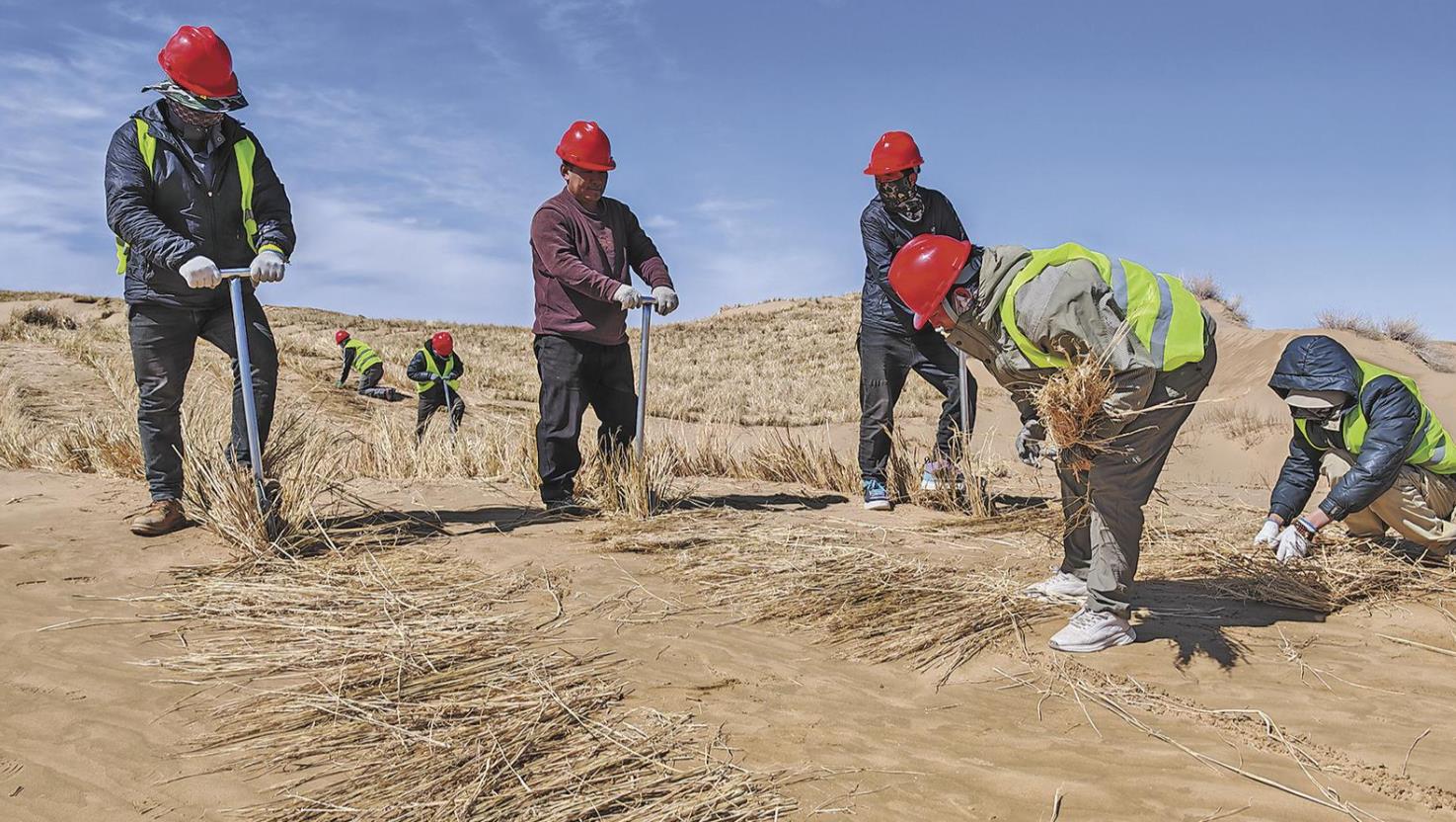 4月14日,海西蒙古族藏族自治州都蘭縣夏日哈鎮(zhèn)河北村,一場(chǎng)防沙治沙行動(dòng)開(kāi)展得如火如荼,現(xiàn)場(chǎng)一片繁忙,工作人員全力投入到緊張的作業(yè)中。據(jù)悉,該防沙治沙項(xiàng)目總投資570余萬(wàn)元,計(jì)劃在1511畝(約100.73公頃)沙化區(qū)域鋪設(shè)稻草方格。項(xiàng)目自3月25日開(kāi)工后,穩(wěn)步推進(jìn),現(xiàn)已完成300畝(20公頃),預(yù)計(jì)將于5月20日全面竣工。項(xiàng)目采用“生態(tài)治理+就業(yè)幫扶”模式,優(yōu)先雇傭當(dāng)?shù)貏趧?dòng)力,已提供超百個(gè)就業(yè)崗位,有效提升了縣域就業(yè)率。