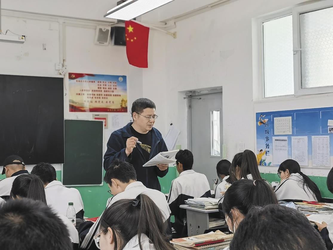 5月14日10時,在海西蒙古族藏族自治州德令哈市第一中學九年級七班的教室里,來自浙江省建德市乾潭初級中學的援青教師謝凱站在過道里,帶著學生一起回顧上節(jié)課的知識點。作為杭州市選派的第五批援青教師,今年7月援青期滿,他就要把“接力棒”交到后來者的手中。