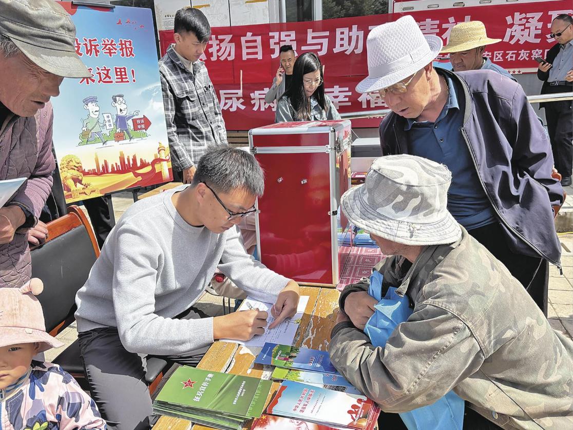 此時(shí)政策咨詢區(qū)內(nèi),工作人員用帶著“泥土味”的鄉(xiāng)音講解,筆記本上密密麻麻記錄著群眾關(guān)于宅基地確權(quán)、臨時(shí)救助申請(qǐng)、人居環(huán)境整治等問題。