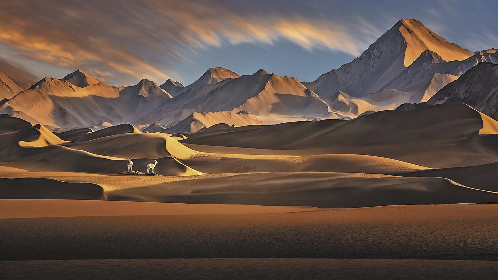 焦生福先生正是將這種審美精神付諸實踐,而創(chuàng)作出了具有自己風格和人文精神的創(chuàng)意影像作品。這也與他曾長期生活工作在柴達木盆地有著不可分割的聯(lián)系。廣袤而荒涼的大地會讓人深刻體會到大自然的偉力和人類的渺小,形成獨特而氣質(zhì)鮮明的審美價值取向。當光線穿透云層射向大地,形成丁達爾光效應,他便開始激動,開始無限地思考、遐想,種種畫面感和構(gòu)圖形式已經(jīng)浮現(xiàn)在他的眼前;荒野之上,野性家族奔跑在傾斜的柔光、飛揚的塵土間,另一種生命的頑強與生生不息的場景會令他興奮,用他的話說,這些光影與奔放的生命正是構(gòu)成他的作品的要素,是表達他的思想的載體。于是乎,一幅幅震撼人心的作品誕生了!