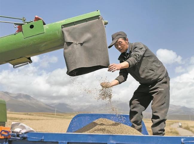 豐收時(shí)節(jié)秋意漸濃,金秋大地沃野千里,青海的田野里穗粒顆顆飽滿,處處金黃。
