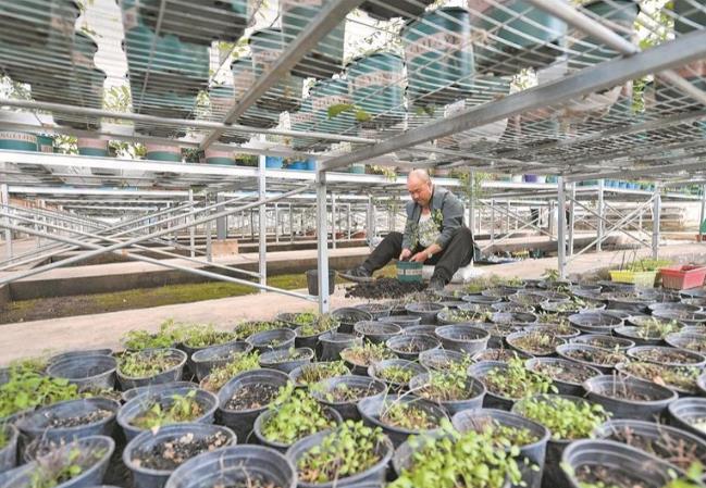科研資源圃里滿是綠意,澆水、育肥、檢測(cè)——綠化人的身影穿梭其間。技術(shù)工常文蹲在苗床邊,指尖輕輕撥開(kāi)根部的土壤,仔細(xì)查看根系的長(zhǎng)勢(shì):“這些苗是特意選的耐寒品種,抗病蟲(chóng)害能力強(qiáng)。培育樹(shù)苗跟養(yǎng)孩子一樣,得摸透它們的‘脾氣’——什么時(shí)候澆水、施多少肥,都得跟著節(jié)氣來(lái)。之前有批云杉苗總發(fā)黃,我們反復(fù)調(diào)土壤酸堿度,試了三四次才讓它們?cè)(wěn)根,F(xiàn)在南北山的大片林子,都是從這樣的小苗一點(diǎn)點(diǎn)長(zhǎng)起來(lái)的。”