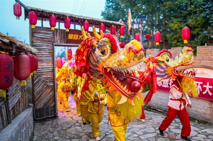 傍晚時分,古寨的青瓦在夕陽下泛著溫暖的光。18時30分左右,一場精彩的舞龍表演拉開活動的序幕,隨后《紅歌大聯(lián)唱》與《安塞腰鼓》輪番上演,瞬間點燃了現(xiàn)場氣氛,游客們移步至武俠城,在古色古香的街巷中穿梭賞月,開啟了一場沉浸式的文化之旅。夜幕降臨,“祭酒仙”民俗表演向酩餾酒這一非遺文化致以敬意;河湟地區(qū)傳統(tǒng)的民俗活動“祭月”祈福在皎潔月光下展開,人們共同祈愿風調(diào)雨順、闔家安康。
