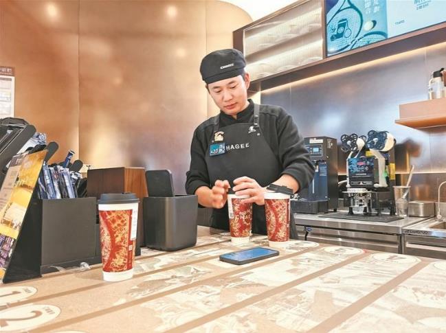 只見(jiàn)沙海邦熟練地將剛剛制作完成的茶飲擺在取餐口。作為一名制茶師,這個(gè)年輕人不僅制作速度快,而且水準(zhǔn)很高,一點(diǎn)不輸其他員工。
