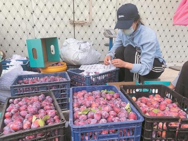 他們?nèi)齼蓛蓢谝黄,包裝不久前采摘下來的西梅。一位男子熟練地將印著“尖扎西梅”的一摞摞扁平紙盒,折成一個個方方正正的小盒;幾位婦女手腳麻利,把西梅套進(jìn)海綿網(wǎng)、整齊碼進(jìn)盒中,不多時,這些帶著鄉(xiāng)土氣息的甜果便發(fā)往了省內(nèi)外。
