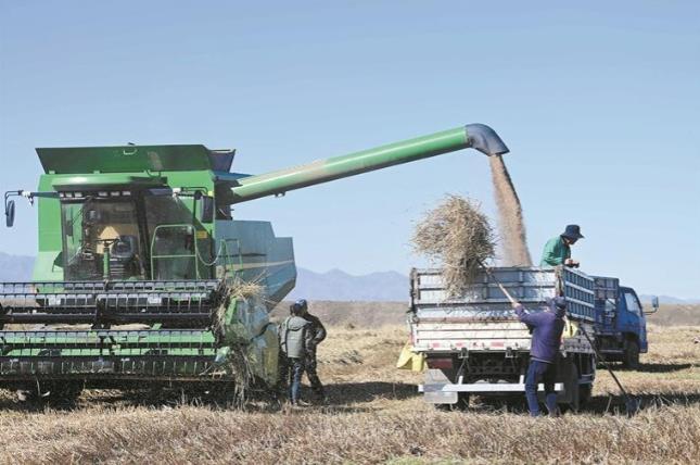 “春種一粒粟,秋收萬顆子。”隨著秋天的深入,海南藏族自治州貴南縣萬畝小麥迎來了豐收的季節(jié)。青稞、小麥等作物在金黃的田野中搖曳生姿,收割機(jī)轟鳴作響,農(nóng)民們忙碌穿梭,確保顆粒歸倉,金黃的麥浪與藍(lán)天白云構(gòu)成一幅豐收的畫卷。近年來,當(dāng)?shù)赝茝V優(yōu)良品種與機(jī)械化作業(yè),為秋糧穩(wěn)產(chǎn)豐收提供了堅(jiān)實(shí)保障。