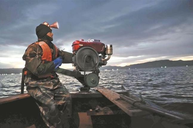 夜幕降臨,亮起一盞盞漁燈,鋪滿湖面,仿佛星星“掉進”龍羊湖,組成了湖面萬里星河,成為鄉(xiāng)村旅游發(fā)展“打卡地”。沈海明駕駛漁船駛入布網區(qū),隨著絞盤作響,漁網出水,無數(shù)銀鱗在燈光中跳躍,一網網的收獲變成了漁民們實實在在的收入。漁民們的幸福生活在“下網”與“收網”的漁歌唱晚間邁向更好的明天。