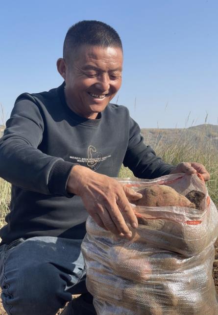 “全膜覆蓋技術(shù)是旱作農(nóng)業(yè)的‘護身符’。”魏建平指著田壟間的薄膜介紹道,使用地膜覆蓋栽培技術(shù)能起到良好的保墑增溫效果,通過改善馬鈴薯生長環(huán)境,實現(xiàn)了明顯的增產(chǎn)和品質(zhì)改善。而隨著馬鈴薯種植業(yè)的發(fā)展,起壟覆膜一體機、收獲機等先進機具的應(yīng)用,讓馬鈴薯種植更加省工省力,機械采收的效率要比純?nèi)斯げ墒仗岣?倍。“以前人工挖一畝地得兩天,現(xiàn)在機器一兩個小時就能完成,還能保證薯塊品相,收購商更愿意加價收購呢!”