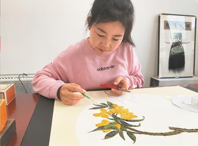 青海新聞網(wǎng)·江源新聞客戶端訊 10月13日,在黃南藏族自治州尖扎縣文化館張吉祥工作室里,張吉祥正帶著徒弟創(chuàng)作一幅絨毛畫(huà)。桌上的小塑料盒里裝著不同顏色的蓬松絨毛,他的徒弟不時(shí)用鑷子取上一縷絨毛,蘸取少許膠水,粘到畫(huà)作中。