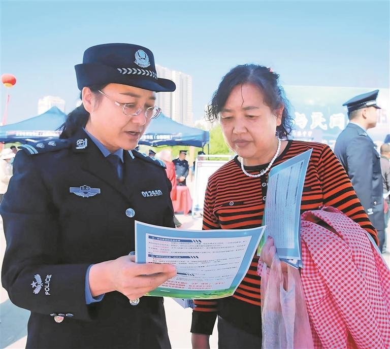 民警為群眾宣傳防范電信詐騙知識。省公安廳供圖