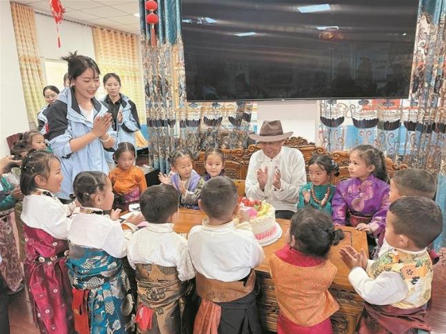 10月29日,黃南藏族自治州同仁市城南幼兒園組織孩子們走進當(dāng)?shù)鼐蠢显,?dāng)天恰逢一位老爺爺生日,師生特意準(zhǔn)備了生日蛋糕,為老人舉辦了一場溫馨熱鬧的重陽生日會。生日蠟燭點燃,孩子們稚嫩的童聲唱響生日歌,老人在大家的祝福中許下美好心愿,共同分享香甜的蛋糕。