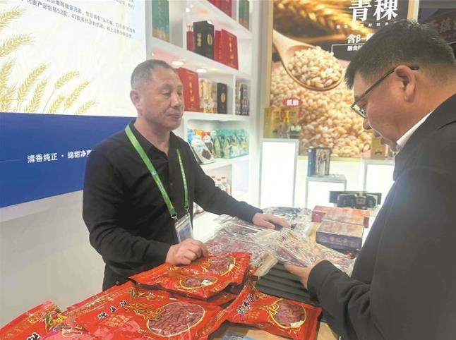 記者穿梭在涌動的人潮里,很快就被一抹獨特的“高原綠”吸引:青海展區(qū)內(nèi),印著雪山、草原、湖泊的背景板格外醒目,新鮮的三文魚、飽滿的枸杞、醇香的青稞酒、清甜的黑大麥茶整齊陳列,企業(yè)負責人忙著遞樣品、介紹產(chǎn)地、核算性價比;客商駐足品嘗、俯身翻看產(chǎn)品介紹、輕聲洽談合作細節(jié),每一處熱鬧場景背后,都藏著青海與世界雙向奔赴的鮮活故事。