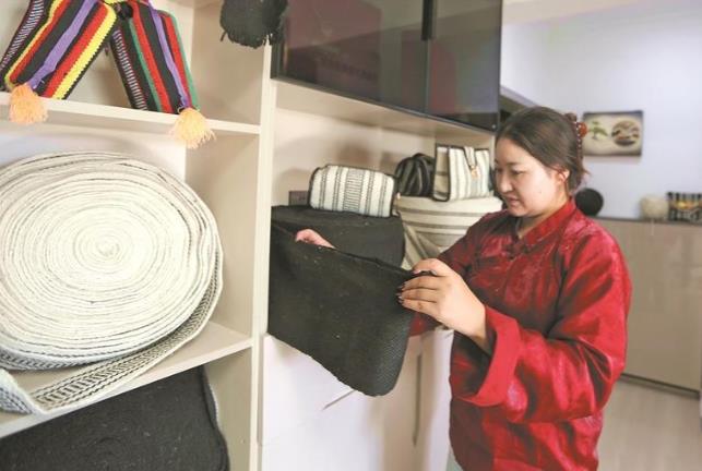 她開始推動(dòng)這項(xiàng)技藝走向市場,不僅制作完整的黑帳篷供旅游體驗(yàn),還創(chuàng)新開發(fā)出用牦牛毛編織的箱包、紙巾盒等日用文創(chuàng)品。