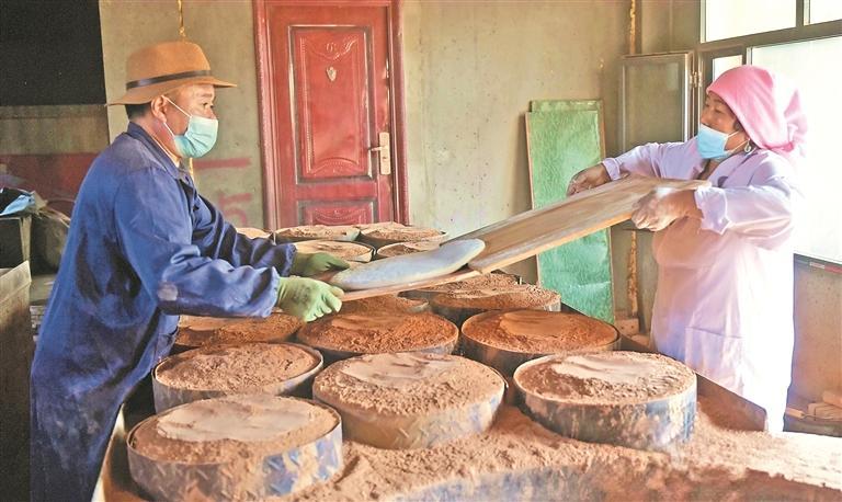 黃河谷底小麥的自磨面,取黃河水,用黃泥筑窯的灶臺上加熱高嶺土——每一個步驟,都離不開這片水土的饋贈。在過去那些不富裕的年歲里,先人們就是用這樣質樸的方式,讓面粉在土與火的交織中重獲新生。2018年,這門手藝被列入省級非物質文化遺產(chǎn),可制作的過程,依然遵循著最古老的法則。