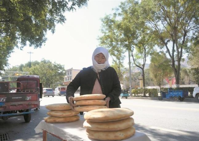 才讓的饃饃鋪在一條深巷,更尕卓瑪每天在巷口設(shè)點售賣,每天都有顧客前來購買。夫婦倆熟練地卸貨、陳列,對每位顧客都真誠相待,顧客們的認可讓他更加堅信,這份傳統(tǒng)美味值得用心守護。