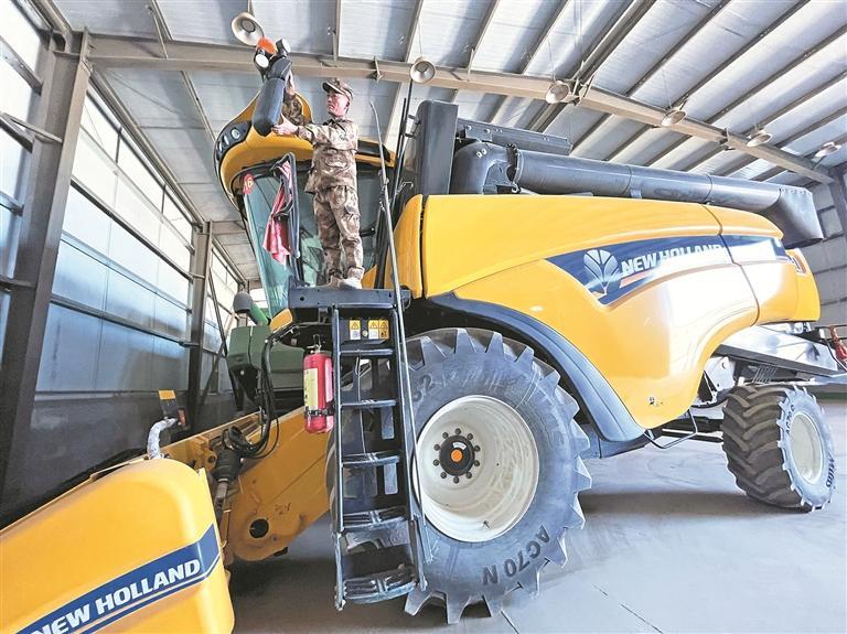 在青海省三江集團(tuán)牧草良種繁殖場(chǎng)有限責(zé)任公司的機(jī)械設(shè)備庫內(nèi),停放著各種新型先進(jìn)農(nóng)機(jī)設(shè)備。公司已經(jīng)實(shí)現(xiàn)從種植到收割的全程機(jī)械化作業(yè)。本報(bào)記者 祁萬強(qiáng) 攝