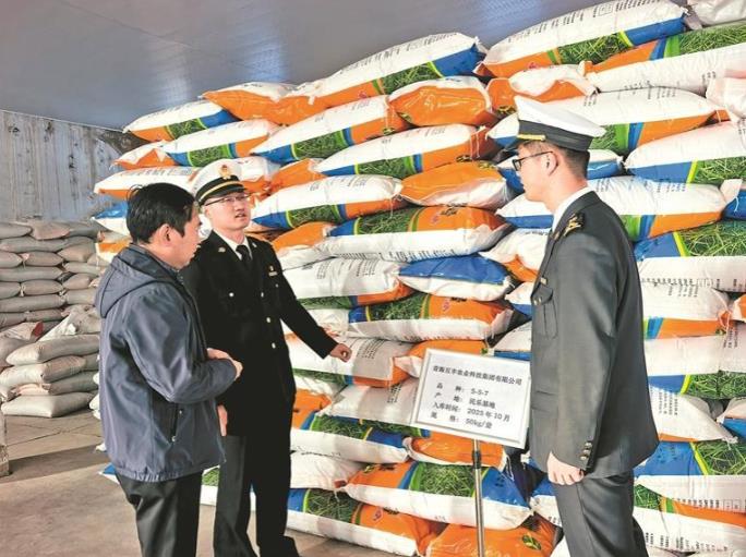 西寧海關(guān)工作人員在青;ヘS集團(tuán)倉庫內(nèi)與賀生平交流。王菲菲 攝