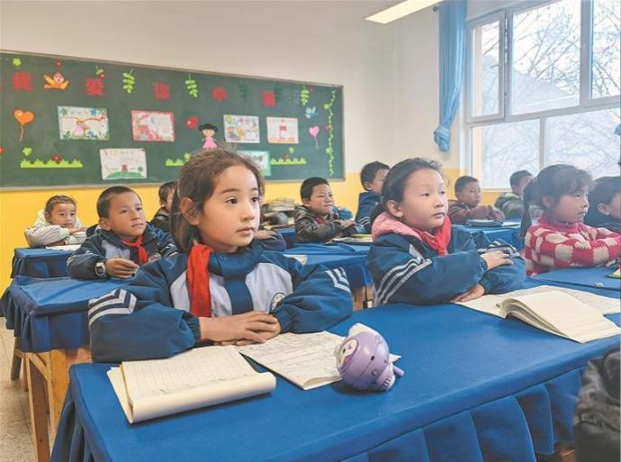 循化縣白莊鎮(zhèn)蘇呼沙學校學生在新教室上課。牛玉嬌 韓麗萍 陳晨 攝