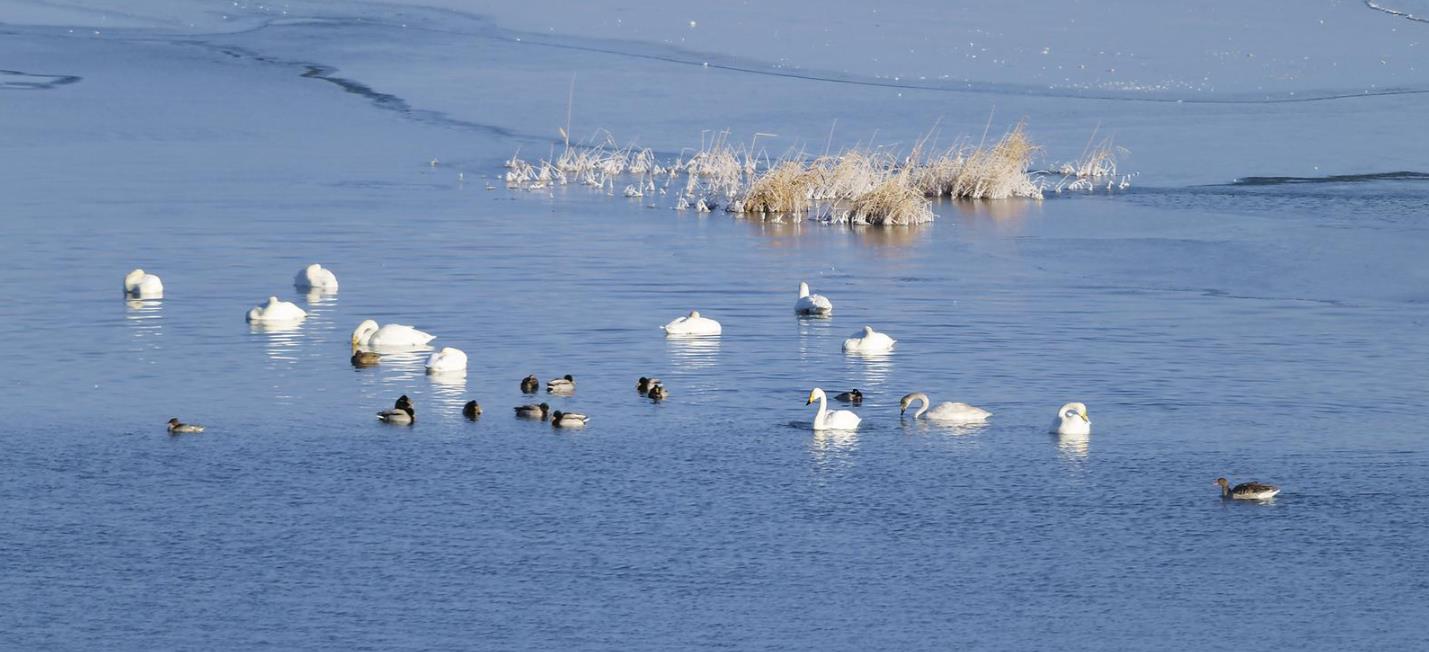 都蘭湖作為固定監(jiān)測(cè)點(diǎn),冬季水鳥(niǎo)監(jiān)測(cè)已持續(xù)四年,數(shù)據(jù)比較穩(wěn)定。鐘悅陶翻出去年的記錄給我看:大天鵝18只,綠頭鴨200多只,灰雁2只。和今天的數(shù)據(jù)相差不大,說(shuō)明這里的越冬環(huán)境對(duì)水鳥(niǎo)而言是可靠的。