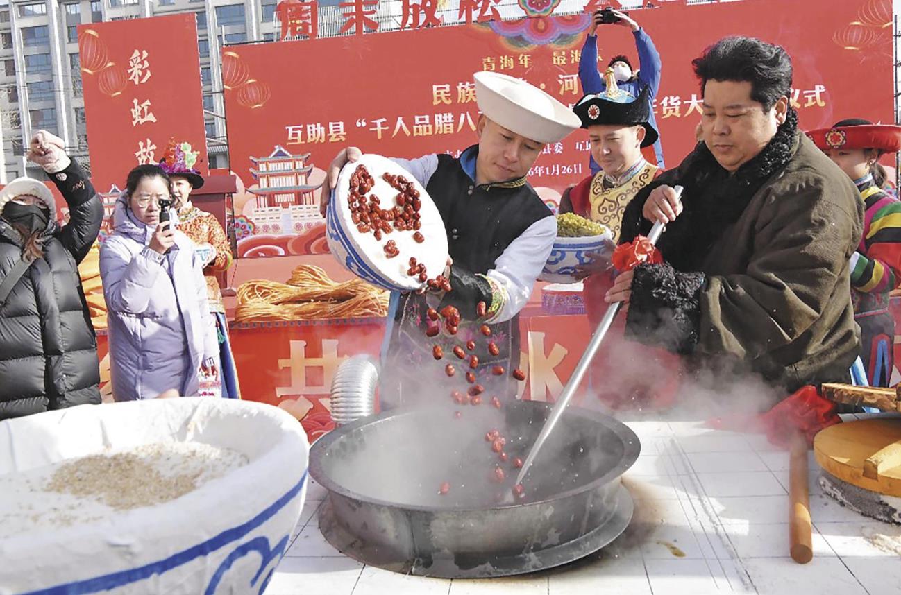 啟動儀式上,巨型鐵鍋熬制著象征團結的“民族團結臘八粥”,邀請現(xiàn)場游客免費品嘗,暖胃又暖心。同時,傳統(tǒng)社火、舞龍舞獅、青海小調(diào)等非遺表演輪番登場,引得觀眾陣陣喝彩。