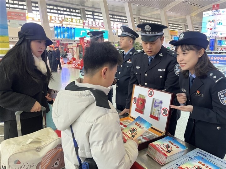 安全出行是春運(yùn)的核心要義。針對春運(yùn)期間旅客攜帶行李物品多、安全防范意識易薄弱的特點(diǎn),西寧火車站派出所民警在進(jìn)站口、安檢處等關(guān)鍵崗位,開展危險品禁帶專項(xiàng)宣傳活動。民警在現(xiàn)場詳細(xì)講解各類危險品的危害特性及攜帶進(jìn)站上車可能引發(fā)的嚴(yán)重后果,并手把手指導(dǎo)旅客如何提前檢查行李、規(guī)避違禁品攜帶風(fēng)險。“感謝民警的提醒,以后乘車一定會仔細(xì)檢查行李,不給自己和他人添麻煩。”旅客們紛紛表示將自覺遵守鐵路安全規(guī)定。結(jié)合春運(yùn)期間電信網(wǎng)絡(luò)詐騙高發(fā)的態(tài)勢,刑警支隊(duì)聯(lián)合青海銀行城東支行工作人員,在候車廳開展反詐宣傳“進(jìn)車站”活動。工作人員重點(diǎn)提醒旅客在購票、進(jìn)站、乘車等各個環(huán)節(jié)提高警惕,不輕易相信陌生人的搭訕和承諾,不隨意透露個人身份證號、銀行卡號、驗(yàn)證碼等敏感信息,守護(hù)好自己的“錢袋子”。