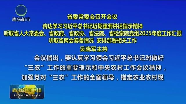 中共青海省委十四屆十次全會舉行 省委常委會主持全會 吳曉軍...
